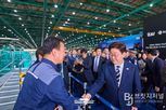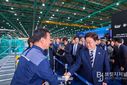 브릿지저널 김경미 기자 | 이재명 대통령은 25일 오후 한국항공우주산업(KAI)에서 열린 KF-21 양산 1호기 출고식에 이어 고정익 생산 현장을 시찰했다. 고정익 생산 현장인 고정익동은 축구장 3개 크기에 해당하는 2만1천㎡ 규모의 공간을 갖췄으며, KF-21을 비롯해 FA-50, T-50 등을 생산하고 있다. 김종출 한국항공우주산업 대표이사는 "연간 50대 이상 생산 가능한 제조 능력을 구축하고 있다"며 "수출 물량 증가에 대비해 지속적으로 투자를 이어갈 계획"이라고 밝혔다. 한국항공우주산업은 올해 KF-21 8대와 FA-50 19대 등 총 27대를 납품할 예정이며, 내년과 내후년에는 각각 31대와 47대를 납품할 계획이다. 고정익동에는 수출 물량이 공정에 따라 일렬로 배치돼 있었다. 이재명 대통령은 말레이시아(FA-50 13대), 폴란드(FA-50 14대), 인도네시아(T-50 4대) 등과 체결한 수출 계약 물량을 정상적으로 조립하고 있는 상황을 확인했다. 이어 이재명 대통령은 한국형 전투기의 핵심인 최첨단 에이사(AESA) 레이다를 포함한 각종 항공전자장비의 높은 독자 개발 수준에 대해 설명