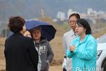 브릿지저널 김경미 기자 | 용혜인 국회의원(기본소득당 안산시지역위원장)이 9일 오전 안산시 상록구 경기지방정원 '새로숲' 조성 현장을 방문해 공사 진행 상황을 점검하고, 사이동커뮤니티센터에서 사이동 주민들과 정원 활용 방안을 논의했다. 이날 현장에는 경기도 정원산업과 담당자들의 안내로 사이동 주민들과 홍순영·서태성 안산시의원 후보 등이 동행했다. 경기지방정원 '새로숲'은 안산 시화매립지를 경기도 대표 정원으로 재탄생시키는 사업이다. 총사업비 845억원을 투입해 해넘이정원·작가정원·습지정원·기후정원 등 주요 시설과 함께 정원지원센터·방문자센터가 조성된다. 지난주 안산갈대습지 지역 등 1단계 개방을 시작했고, 전체 준공은 2027년 10월 예정이다. 용 의원은 이날 현장 브리핑에서 "1단계 개방부터 안산시민들의 관심과 기대가 뜨겁다"면서 "2027년 예정 준공 일정이 차질 없이 이행되어야 하며, 공사 전 과정에서 작업자 안전이 각별히 준수되어야 한다"고 강조했다. 또한, “현장을 직접 살펴보니 경기정원 진입도로가 자동차 정비단지와 이어져 있어 열악한 실정인데 진입로 정비가 필요한 것으로 보인다”고 전했다. &nb