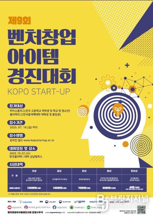 브릿지저널 정보영 기자 | 고용노동부 한국폴리텍대학은 청년들의 창의성과 도전 정신을 키우고, 우수한 창업 아이템의 연구·개발을 지원하기 위해 '제9회 벤처창업아이템 경진대회'를 개최한다고 30일 밝혔다.