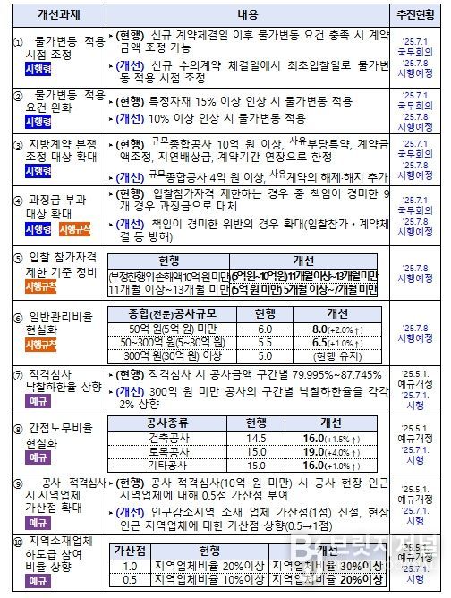 이와 함께 지방계약 제도개선 사항 발표(3월 31일) 후 지난 5월 1일 개정한 지방계약 예규의 일부 개정사항이 7월 1일부터 전면 시행된다.