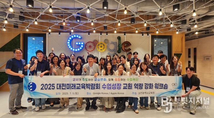 브릿지저널 정보영 기자 | 대전시교육청은 7월 5일, 서울 Google Korea 및 Apple Korea 본사에서 2025 대전미래교육박람회 수업성장 프로그램에 참여하는 교원, 교육전문직원 등 40명을 대상으로'2025 대전미래교육박람회 수업성장 교원 역량 강화 워크숍'을 실시했다고 밝혔다.