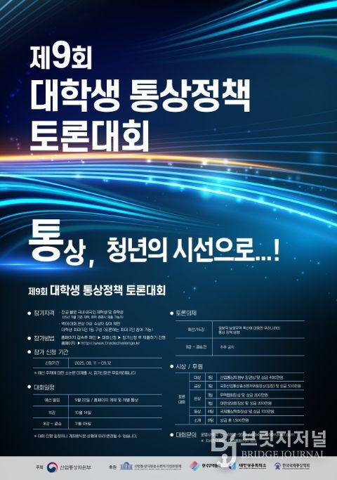 브릿지저널 정보영 기자 | 산업통상자원부는'2025년 대학생 통상정책 토론대회'참가 신청을 8월 11일부터 9월 12일까지 받는다.