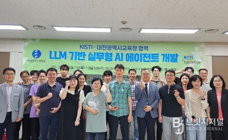브릿지저널 정보영 기자 | 대전시교육청은 8월 11일부터 14일까지 4일간(총 24시간) 한국과학기술 정보연구원(KISTI)과 협력하여 ‘LLM(대규모 언어모델) 기반 실무형 AI 에이전트 개발 직무연수 (심화과정)’을 운영한다고 밝혔다.