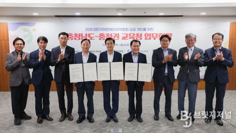 브릿지저널 정보영 기자 | 대전시교육청은 8월 14일 충남도청과 2026. 4. 25. ~ 5. 24.에 개최되는 '태안국제원예치유박람회'를 계기로 학생들의 현장체험학습 활성화 기회와 박람회의 성공적 개최를 위한 업무협약을 체결했다고 밝혔다.
