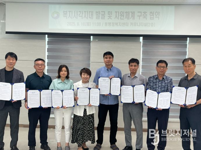 브릿지저널 정보영 기자 | 대전 서구 복수동 행정복지센터는 지난 18일 위기가구를 신속하게 발굴·지원하는 촘촘한 사회안전망을 구축하고자, 관내 공동주택 관리사무소 10개소와 ‘복지 사각지대 발굴 및 지원체계 구축을 위한 업무협약’을 체결했다.