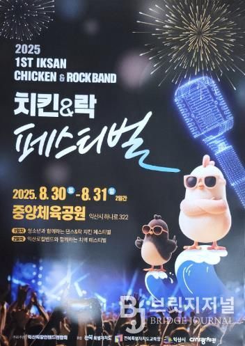 익산시는 오는 30일과 31일 이틀간 중앙체육공원 축구장에서 '제1회 치킨·락밴드 페스티벌'이 열린다고 21일 밝혔다.
