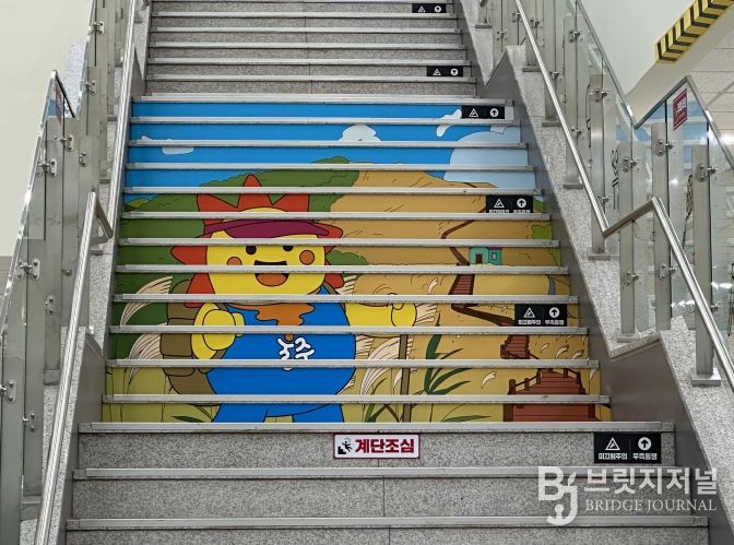 건강계단 설치는 센터를 방문하는 군민들이 계단을 이용하는 과정에서도 자연스럽게 건강 메시지를 접할 수 있도록 구성됐다. 건강계단은 각 단마다 칼로리 소모, 심혈관 건강, 일상 신체활동의 중요성 등의 메시지를 시각적으로 배치해, 건강 인식과 실천을 동시에 유도한다. 또한 울주군의 상징 캐릭터인 해뜨미 캐릭터를 배치하여 울주군만의 특성을 잘 살렸다.