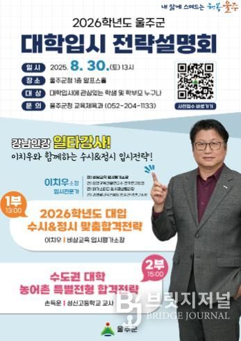 브릿지저널 윤나영 기자 | 울산 울주군이 오는 30일 울주군청 알프스홀에서 2026학년도 울주군 대학입시 전략설명회를 개최한다고 25일 밝혔다.