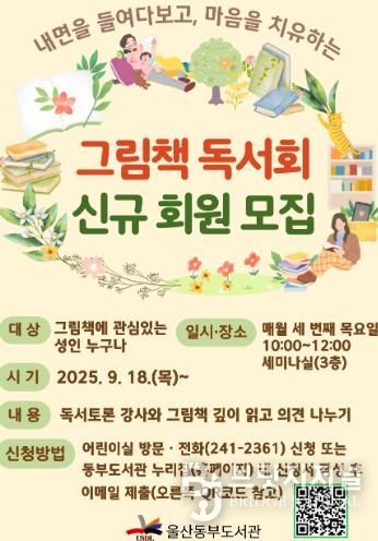 브릿지저널 윤나영 기자 | 울산 동부도서관은 전문 독서토론 강사와 함께 매월 다양한 그림책을 읽고 의견을 나누며 자기 성찰의 시간을 보내는 그림책 독서회를 창단한다.