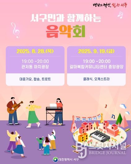 브릿지저널 정보영 기자 | 대전 서구는 구민 모두가 함께 즐기는 ‘서구민과 함께하는 음악회’를 8월과 9월 두 차례 개최한다.