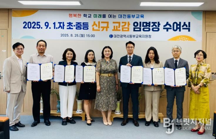 브릿지저널 정보영 기자 | 대전동·서부교육지원청은 8월 25일 2025. 9. 1.자 인사발령에 따른 유·초·중등 신규 교(원)감 임명장 및 인사발령통지서 수여식을 실시했다.