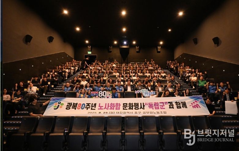 이날 행사는 김제선 중구청장과 이정만 대전 중구 공무원 노조위원장 등 직원 150여 명이 참여했다. 광복 80주년을 맞아 대한민국 독립전쟁사를 다루는 다큐멘터리 영화를 함께 관람하면서 대한민국이 어떤 희생과 헌신 위에 세워졌는지를 되새기고, 공직자로서 함께 나아갈 방향에 대해 논의하고 소통하는 시간을 가졌다.