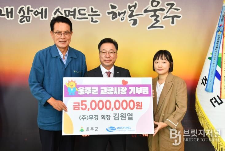 브릿지저널 윤나영 기자 | 김원열 ㈜무경 회장이 26일 울주군 지역 발전을 위해 고향사랑기부금 500만원을 기탁했다.