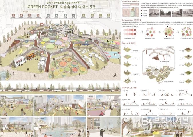 브릿지저널 김진석 기자 | ‘2025 대구 도시디자인 공모전’에서 공간의 다층적 해법으로 높은 활용도를 인정받은 ‘GREEN POCKET, 도심 속 살아 숨 쉬는 공간’이 대상작으로 선정됐다.