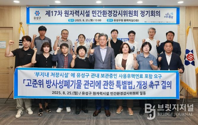 브릿지저널 정보영 기자 | 유성구 원자력시설 민간환경감시위원회(이하 ‘원자력민간감시위’·위원장 정용래 유성구청장)가 다음 달 시행되는 ‘고준위 방사성폐기물 관리에 관한 특별법’의 개정을 촉구했다.
