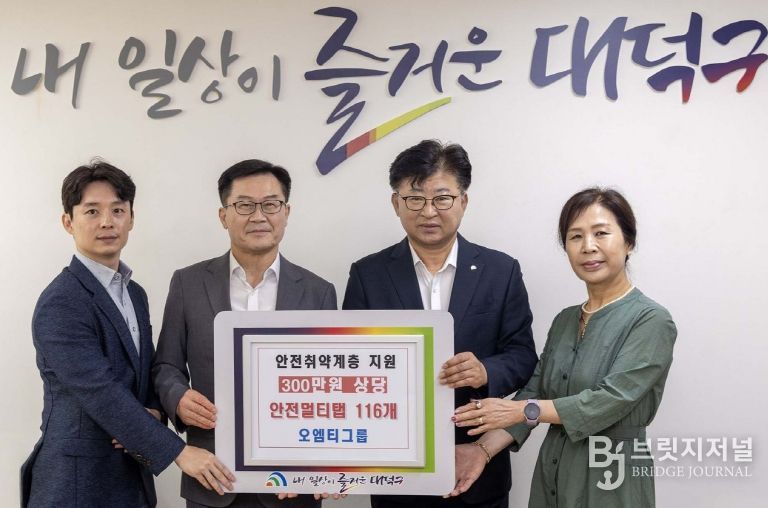 브릿지저널 정보영 기자 | 대전 대덕구는 오엠티그룹(회장 오명탁)으로부터 지역 취약계층 지원을 위한 300만원 상당의 화재 예방 안전멀티탭을 기탁받았다고 27일 밝혔다.