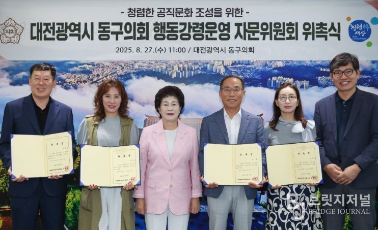 브릿지저널 정보영 기자 | 대전 동구의회는 27일 의회 3층 간담회장에서 동구의회 행동강령운영 자문위원회 위원 위촉식을 개최했다.