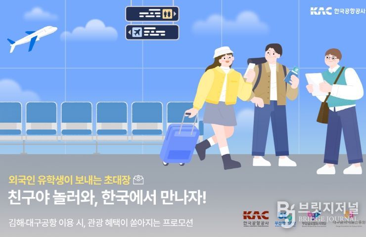 브릿지저널 김진석 기자 | 대구광역시와 대구문화예술진흥원은 한국공항공사와 협력해 지역 체류 중인 외국인 유학생 대상으로 ‘친구·친지 방문 환영 이벤트’를 추진한다.