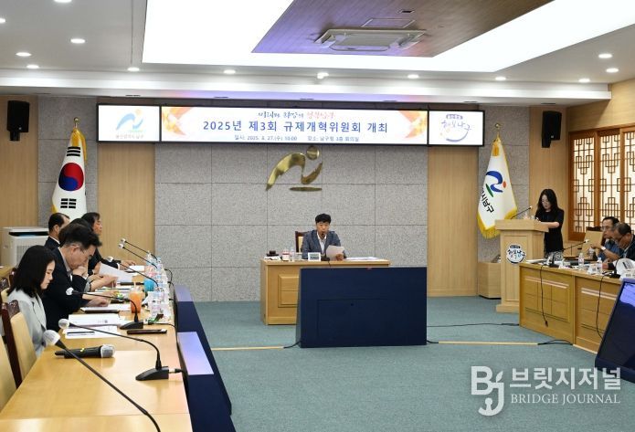 브릿지저널 윤나영 기자 | 울산 남구는 27일 남구청 3층 회의실에서 주민과 기업의 불편을 초래하는 자치법규 규제를 개선해 행정의 책임성을 높이고 주민의 권익보호를 강화하기 위한 ‘2025년 제3회 규제개혁위원회’를 개최했다.