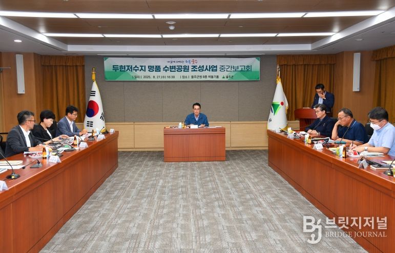 브릿지저널 윤나영 기자 | 울산 울주군이 27일 군청 비둘기홀에서 이순걸 울주군수와 관계 공무원 등이 참석한 가운데 ‘두현저수지 명품 수변공원 조성사업 실시설계용역’ 중간보고회를 개최했다.
