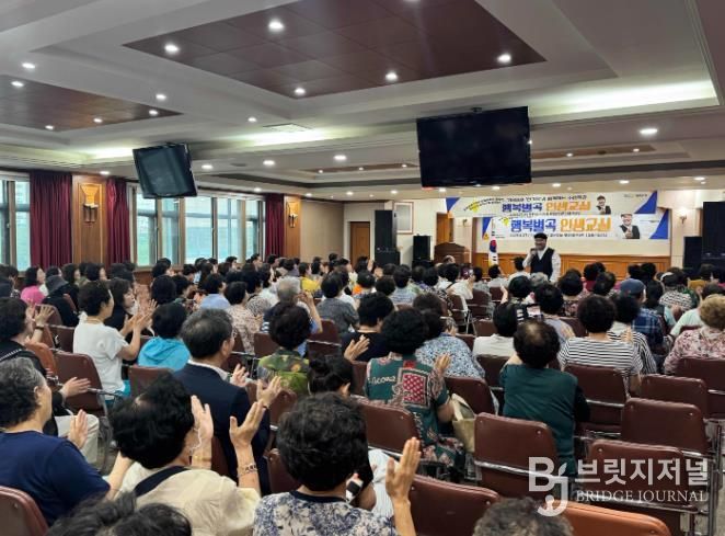 브릿지저널 김진석 기자 | 대구 수성구 고산2동은 지난 27일 고산2동 행정복지센터 3층 대강당에서 주민들을 대상으로 ‘끝(END)이 아닌 계속(AND)되는 삶의 주인공 되기’를 주제로 한 '행복별곡 인생교실' 무료 강의를 성황리에 개최했다.