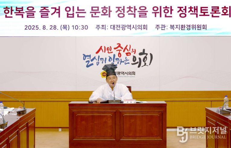 브릿지저널 정보영 기자 | 대전시의회는 28일 시의회 소통실에서 ‘한복을 즐겨 입는 문화 정착을 위한 정책토론회’를 개최하고 전통문화의 계승·발전을 위한 한복 착용 활성화 방안을 논의했다.