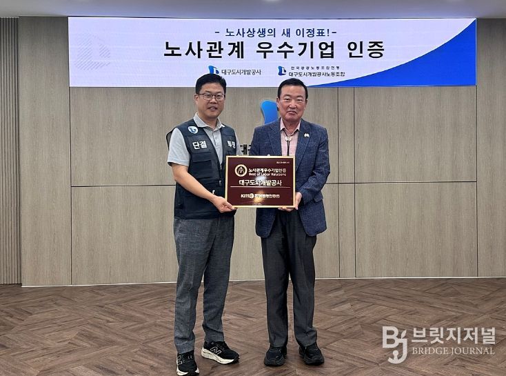 브릿지저널 김진석 기자 | 대구도시개발공사는 한국경영인증원(KMR)으로부터 ‘노사관계우수기업 인증’을 획득했다고 28일 밝혔다.