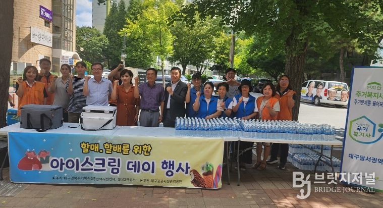 브릿지저널 김진석 기자 | 대구공공시설관리공단은 8월 27일 주택관리공단 대구경북지사 주거복지전문인력지원센터와 함께 월성주공2단지에서 폭염 예방을 위한 ‘폭염대응키트 제공’ 행사를 개최했다.