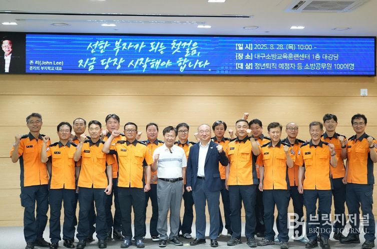 브릿지저널 김진석 기자 | 대구소방안전본부는 8월 28일 오전 10시 대구소방교육훈련센터 1층 대강당에서 금융전문가 존리 대표를 초청해 ‘선한 부자가 되는 첫 걸음, 지금 당장 시작해야 합니다’라는 주제로 특별강연을 개최했다.