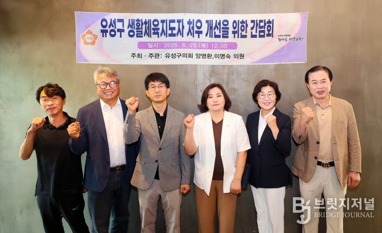브릿지저널 정보영 기자 | 대전광역시 유성구의회 양명환·이명숙 의원은 28일, “생활체육지도자 처우 개선을 위한 간담회”를 공동 주최했다. 이번 간담회에는 생활체육지도자와 유성구체육회 관계자 등이 참석하여 현장의 목소리를 듣고 향후 지원 방안을 논의했다.