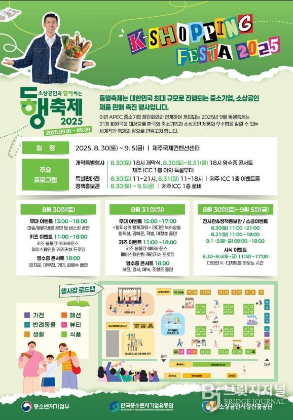 브릿지저널 정보영 기자 | 중소벤처기업부는 제주도에서 8월 30일과 31일 이틀간 전국의 소상공인이 모여 상생과 화합을 도모하는 장이 마련된다고 밝혔다.