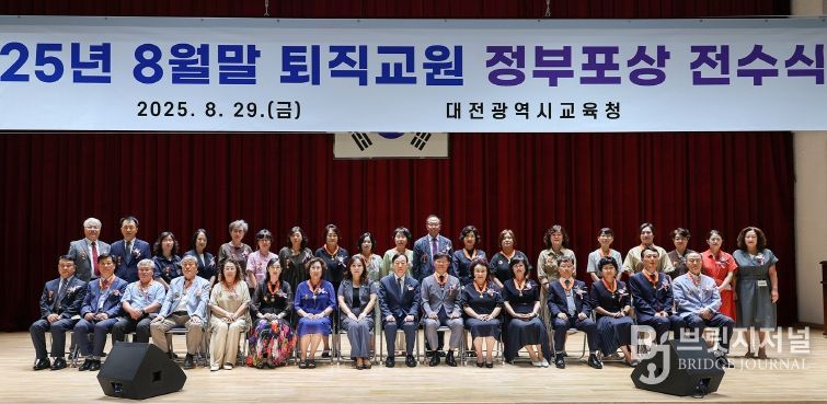 브릿지저널 정보영 기자 | 대전시교육청은 8월 29일 11시 본관 대강당에서 퇴직교원 정부포상 대상자와 가족 및 교육청 관계자 등이 참석한 가운데 2025년 8월말 퇴직교원 정부포상 전수식을 개최했다고 밝혔다.