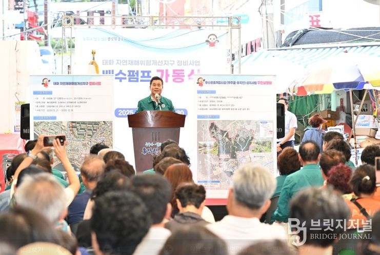 브릿지저널 윤나영 기자 | 울산 중구가 8월 29일 오후 3시 30분 태화시장 일원에서 ‘태화자연재해개선지구 정비사업’ 태화배수장 펌프 가동식을 개최했다.