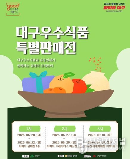 브릿지저널 김진석 기자 | 대구광역시는 지역 경제 활성화를 위해 지역 우수식품 제조업소와 대형 유통업체가 함께하는 ‘2025년 대구우수식품 릴레이 특별판매전’의 마지막 행사를 오는 9월 1일부터 7일까지 일주일간 대구신세계백화점에서 개최한다.