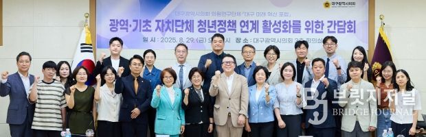 브릿지저널 김진석 기자 | 대구시의회 의원연구단체 ‘대구미래혁신포럼’(대표 이재숙 의원)은 8월 29일, 의회 3층 회의실에서 시·군·구 청년정책 관계자들과 함께 '광역·기초 자치단체 청년정책 연계 활성화를 위한 간담회'를 개최했다.