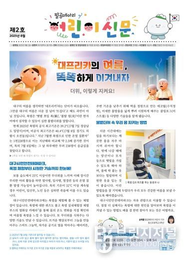 ‘팔공메아리 어린이 신문’ 2호에는 특집기사 ‘대프리카의 여름, 똑똑하게 이겨내자’를 비롯해 ‘동촌유원지 체험’, ‘와글와글 아이세상’, ‘팔공초·중학교 소개’ 등 어린이 기자단의 시각이 담긴 기사 14건을 담았다.