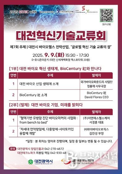 브릿지저널 정보영 기자 | 대전시는 9월 9일 대전신세계 엑스포타워 20층 D-유니콘라운지에서 ‘제7회 대전혁신기술교류회(DITEC)’를 개최한다.