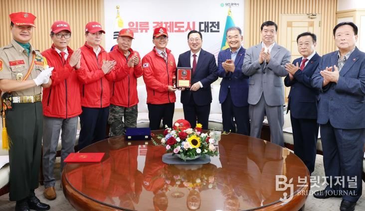 브릿지저널 정보영 기자 | 해병대전우회는 9월 2일 대전시청 10층 응접실에서 이장우 대전광역시장에게 감사패를 전달했다.
