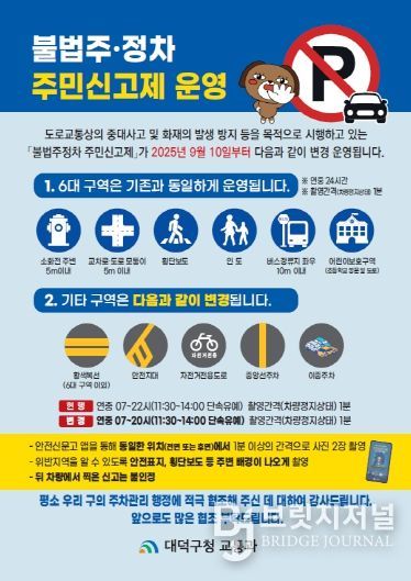 한편, 대덕구는 제도 변경사항을 구청 누리집, 동 행정복지센터, 현장 안내문 등을 통해 안내하고, 단속 민원 대응 매뉴얼도 함께 정비해 혼선 최소화에 나설 예정이다.