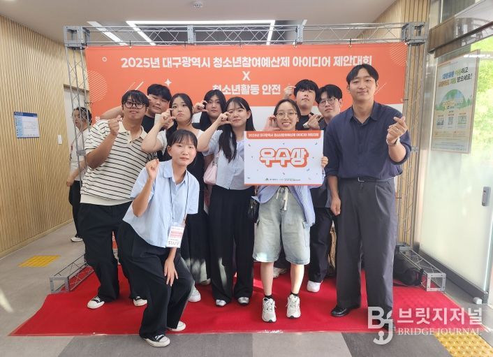 브릿지저널 김진석 기자 | 대구 동구청소년문화의집 아름드리(관장 설영일) 청소년참여기구는 대구광역시가 주관한 ‘2025년 대구광역시 청소년참여예산제 아이디어 제안대회’에서 우수상(대구광역시장상)을 수상했다.