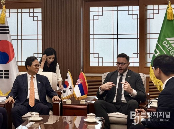 - 이날 면담에서 네마냐 그르비치 주한세르비아 대사는 “한국에서 의미 있는 도시 중 하나인 대구에서 대사님을 만나 뵙고, 대구와 세르비아 간 다양한 협력 기회에 대해 얘기할 수 있게 돼 영광이다”고 말했다.