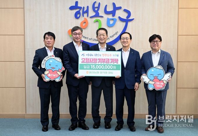 브릿지저널 윤나영 기자 | 울산 남구는 울산농협 임직원들이 3일 남구청을 방문해 고향사랑기부금 1,500만원을 전달했다고 밝혔다.