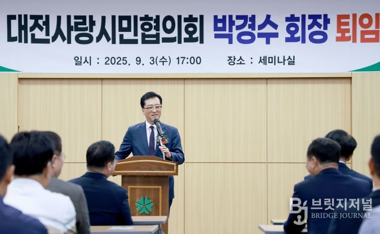 브릿지저널 정보영 기자 | 대전시의회 조원휘 의장은 3일 시청 세미나실에서 개최된 대전사랑시민협의회장 퇴임식에 참석해 지역사회에 시민의 목소리에 귀 기울이며 전달자 역할에 헌신해 오신 박경수 회장에 대해 감사를 표했다.
