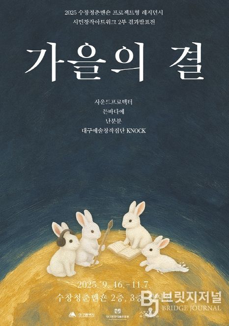 브릿지저널 김진석 기자 | 대구문화예술진흥원 문화예술본부는 청년예술가와 시민이 함께 만든 창작의 결실인 시민창작아트워크 2부 ‘가을의 결’을 9월 16일부터 11월 7일까지 수창청춘맨숀에서 개최한다.