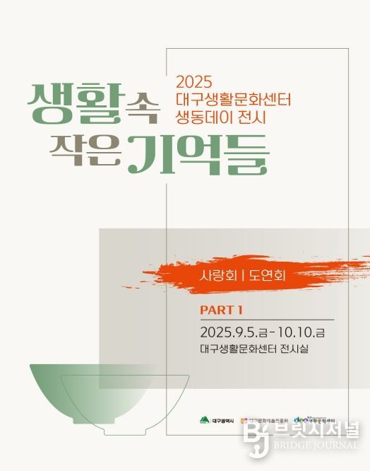 브릿지저널 김진석 기자 | (재)대구문화예술진흥원 대구생활문화센터는 2025년 두 번째 생동데이 전시 “생활 속 작은 기억들”을 개최한다. 이번 전시는 9월 5일부터 10월 10일까지 대구생활문화센터 전시실에서 열린다.
