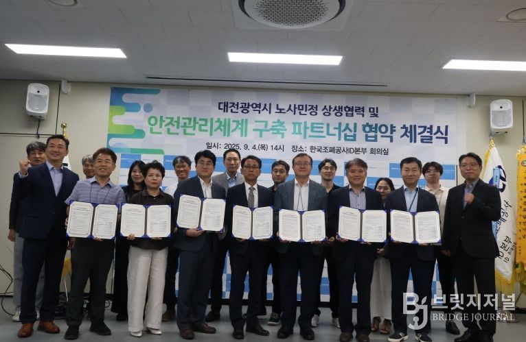 브릿지저널 정보영 기자 | 대전시 노사민정협의회(위원장 이장우 대전시장)는 9월 4일 한국조폐공사 ID본부 회의실에서 '산업재해 예방 안전관리체계 구축 파트너십 공동협약'을 체결했다.