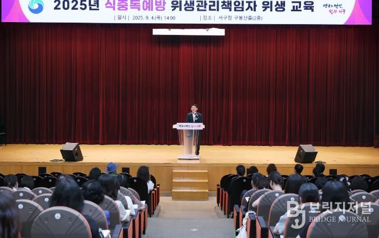 브릿지저널 정보영 기자 | 대전 서구는 구청 구봉산홀에서 관내 집단급식소 영양사와 급식 종사자 400여 명을 대상으로 식중독 예방 특별 위생 교육을 진행했다고 5일 밝혔다.