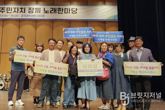 브릿지저널 김경미 기자 | 가평군 가평읍 주민자치센터 문화동아리 ‘Am(에이마이너)’가 경기도 주민자치 문화경연대회에서 장려상을 차지했다. 가평읍 동아리는 3일 수원시 경기아트센터 대극장에서 열린 ‘2025 경기도 주민자치 문화경연대회’에 가평군 대표로 참가해 열정적인 무대를 선보였다.