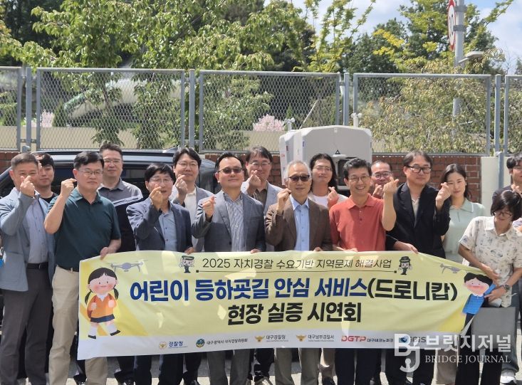 브릿지저널 김진석 기자 | 대구광역시 자치경찰위원회는 9월 5일 남구 대덕초등학교 일대에서 대구경찰청, 남부경찰서, 대구테크노파크, 지역 주민 및 관계 전문가 30명이 참석한 가운데 ‘어린이 등하굣길 안심 순찰 서비스 실증 시연회’를 열었다.