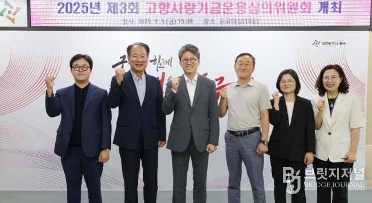 브릿지저널 정보영 기자 | 대전 동구는 5일 구청 중회의실에서 ‘2025년 제3회 고향사랑기금운용심의위원회’를 개최하고, ‘2026년도 고향사랑기금 운용계획(안)’을 심의·의결했다고 밝혔다.